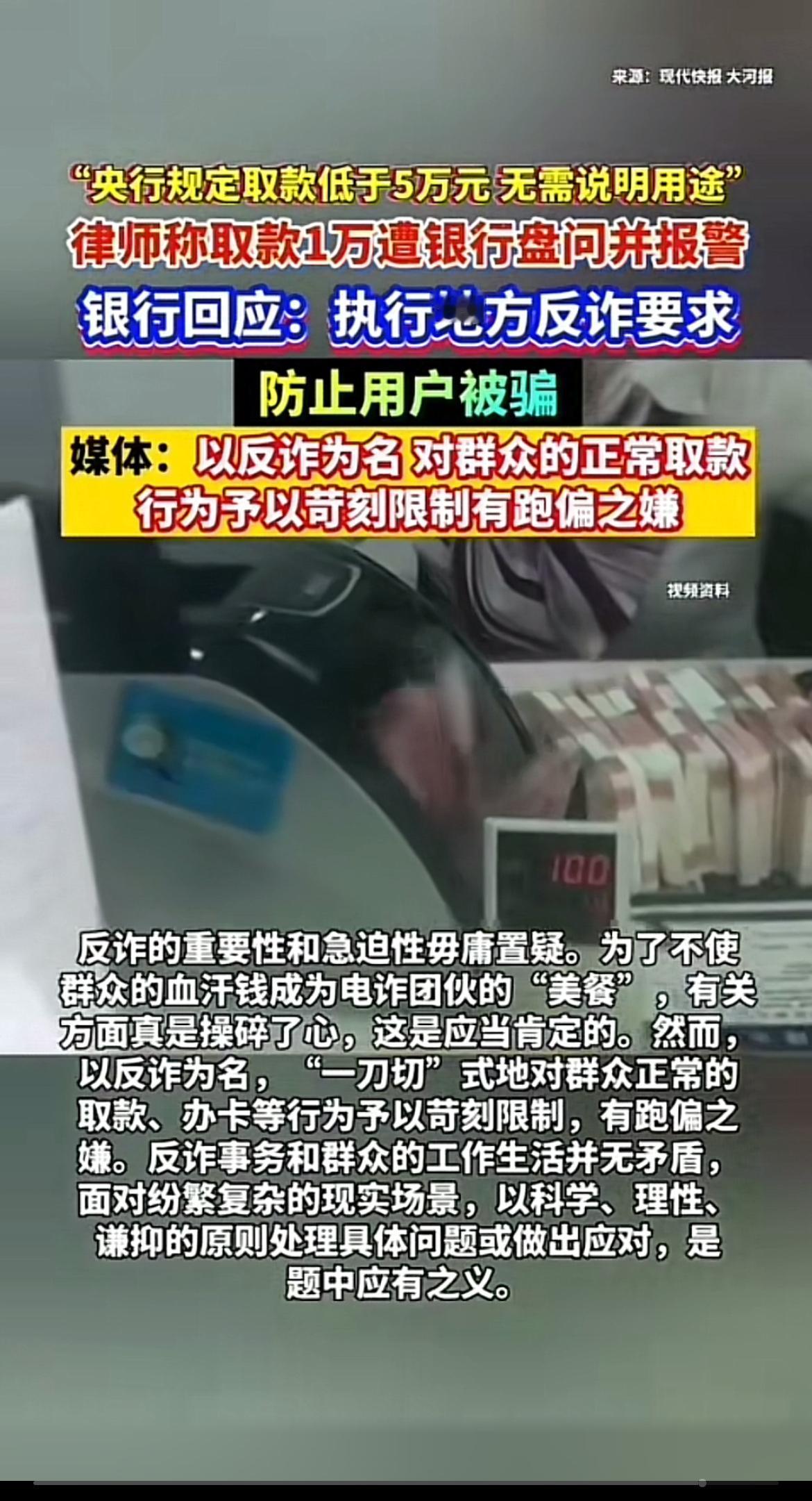 最近网上疯传银行取款新规,甚至有“居民存款被‘锁死’”的说法,闹得人心惶惶。网上