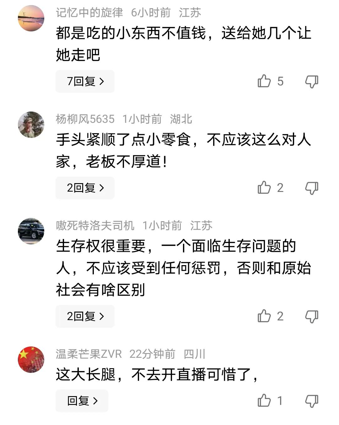 一个年轻女孩偷了一大堆零食藏在衣服里面,被超市的人在门口抓住了,一小包一小包的零食从衣服里抖出来,掉了一地。这个过程被拍下来放到网上,看看评论区一堆三观不正的人说的啥话。这个社会变得越来越癫了。