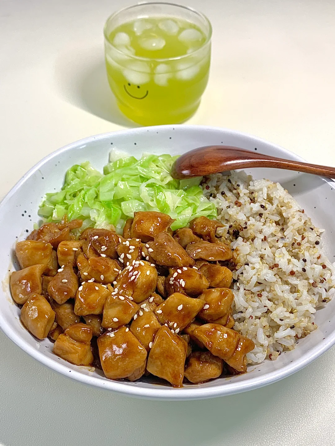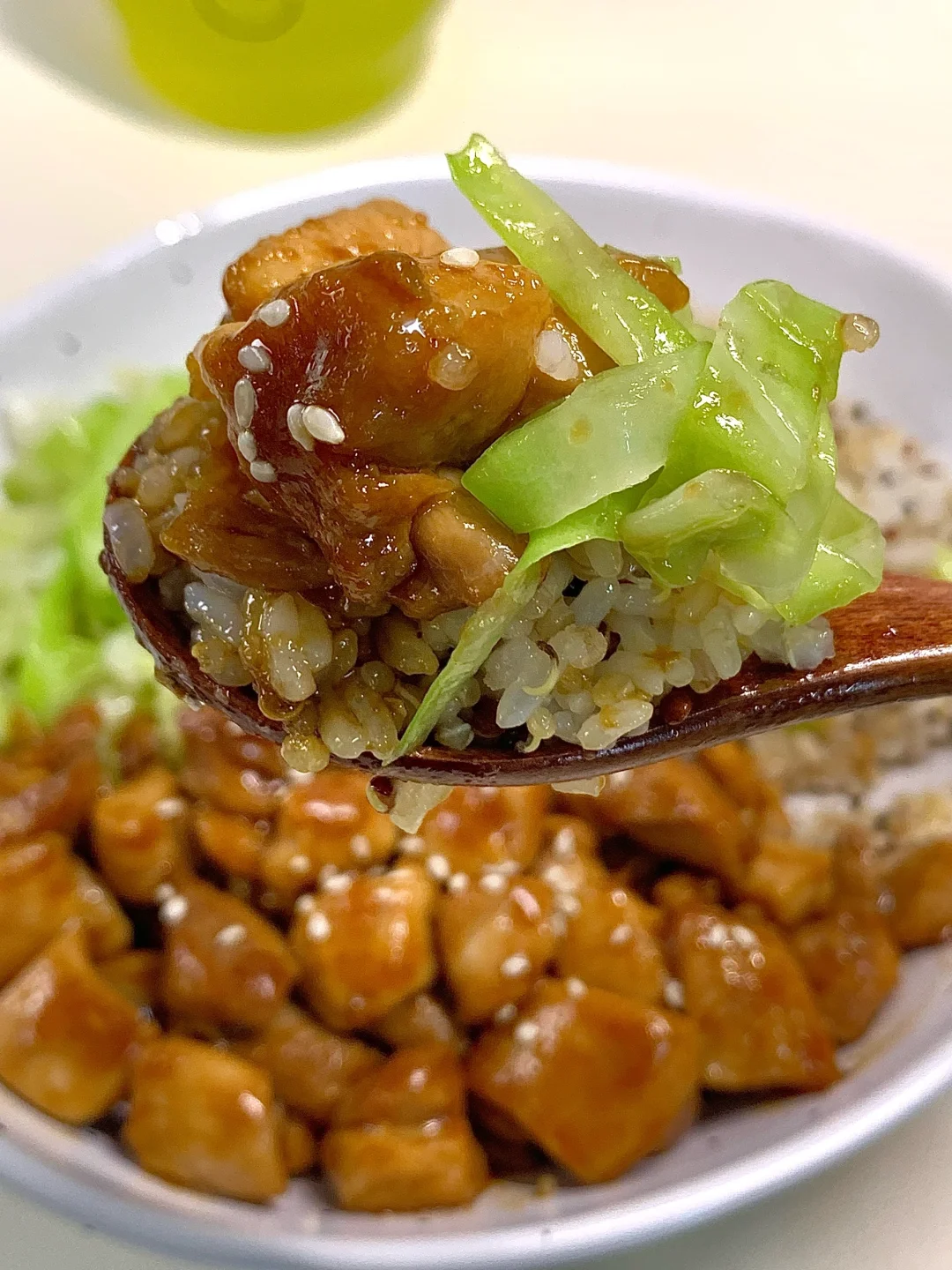 分享巨好吃的低卡糖醋鸡肉 🧑🏻🍳详细教程在图里,一起来试试这个美味吧🧑🏻🍳 适量藜麦饭,包菜丝炒熟 鸡腿肉用生粉、姜片、蚝油、生抽腌制10分钟 鸡腿肉炒至变色、淋上酱汁盖盖煮至收汁即可出锅~ 装盘开吃啦~ 减脂餐这样吃太棒了,低卡低脂高蛋白 我用的鸡腿肉,比较嫩~ 拌起饭来香香香~![赞R]