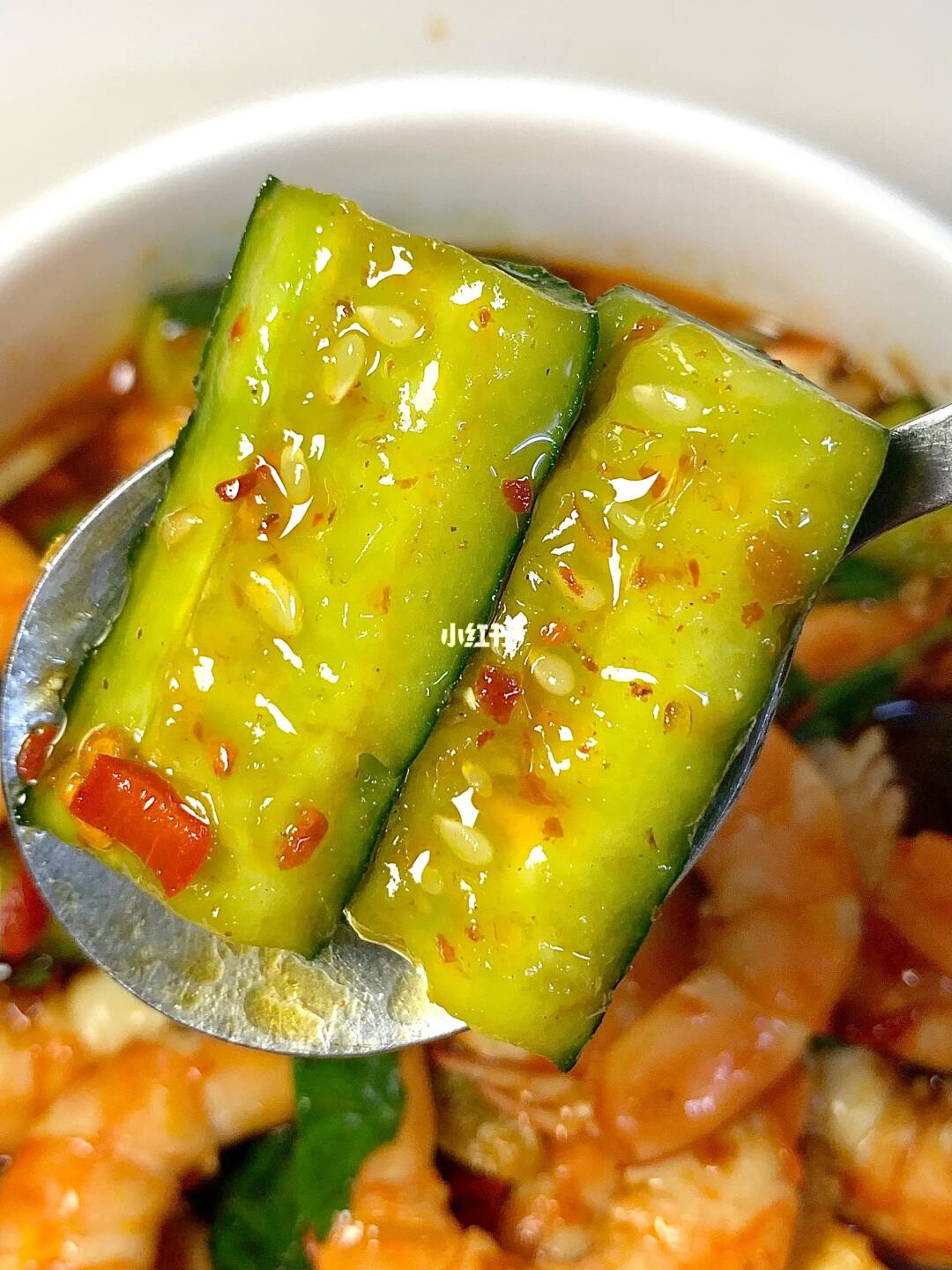 秋日炎炎 自然少不了爽口拌菜, 这个「凉拌菜」一定要试一试! 有条件的再冰镇一下太太好吃辣! 真的值得一试~ [开箱R]食材:虾 黄瓜 🫕做法:如图所示~ 酱汁:蒜未 小米辣热油滋一下 2勺生抽 1勺蚝油1勺香醋 适鸡精代糖拌匀备用~ 小贴士:虾不要煮太久水开放锅里不能超四分钟 口感会更好吃!