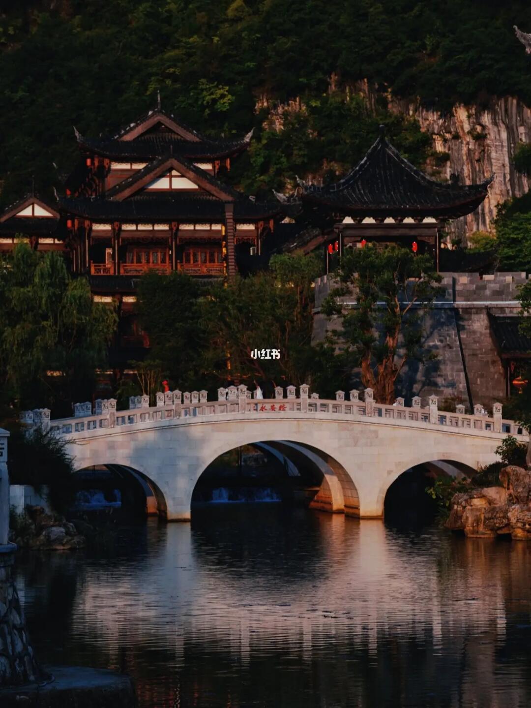 [气球R]古镇依山而建,在贵州特色的喀斯特地貌中巧妙的搭配有湖泊、溪流、瀑布、溶洞、建筑,设计精妙景观立体玩法丰富