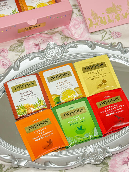 礼盒里一共有6️⃣种茶~每天都可以喝不一样的口味好开心!!很适合选择困难的姐妹!醇厚甘甜的伯爵红茶、清新的柠檬干姜茶、清爽的绿茶等等…每一款茶都有其独特的风味,冬天喝暖心又暖胃❄️