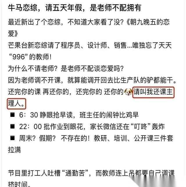 一群人,请了整整5天年假,去海南录一个恋爱综艺。 结果你猜怎么着?到了地方,拉上窗帘,第一件事是集体补觉。 我当时就看乐了,笑着笑着又觉得有点想哭。这哪里是恋综啊,这分明就是我们每个打工人的“历劫实录”。 镜头里,他们不聊理想,不谈风月,张嘴就是房租多少钱,裸辞后怎么活,开口互称“老师”。那股子熟悉的“班味儿”,隔着屏幕都快把我熏窒息了。 最扎心的一幕,是凌晨一点,所有人都睡了,一个嘉宾,默默掏出电脑,戴上耳机,开始对接工作。 那一刻我彻底破防了。 我们以为请了假就是逃离,其实只是换了个风景优美的地方,继续当牛做马。 这不就是我们吗? 把人生所有重要的时刻,都塞进那几天珍贵的假期里。结婚、生娃、奔丧……所有需要我们亲身参与的“人生大事”,都得先填一张假条,等一个“已批准”。 我前阵子在网上看到三张请假条,一个男人,为了照顾重病的妻子,前前后后请了9天假。回来上了10天班,递上第三张假条,请3天,事由是:妻子去世。 一辈子的爱人,12天假。 人生被简化成一张A4纸上的流程,你说荒不荒谬? 更可悲的是,我们甚至开始为“请假”感到羞耻。亲人病危,第一反应是“我的工作怎么办”,等处理完一切,在赶去见最后一面的路上,才后知后觉地骂自己“不是人”。 到底是什么样的前程,值得我们错过每一个季节,错过每一次告别? 别傻了。 工作是工作,它就是个换饭吃的工具。全勤奖那几百块,买不来你在公园里晒到的太阳,也抵不过你跟家人朋友吃一顿火锅的快乐。 我们的人生,不该只在假期里“限时高光”。 世界的条条框框已经够多了,别再用“请假”这件事,把自己给框死了。