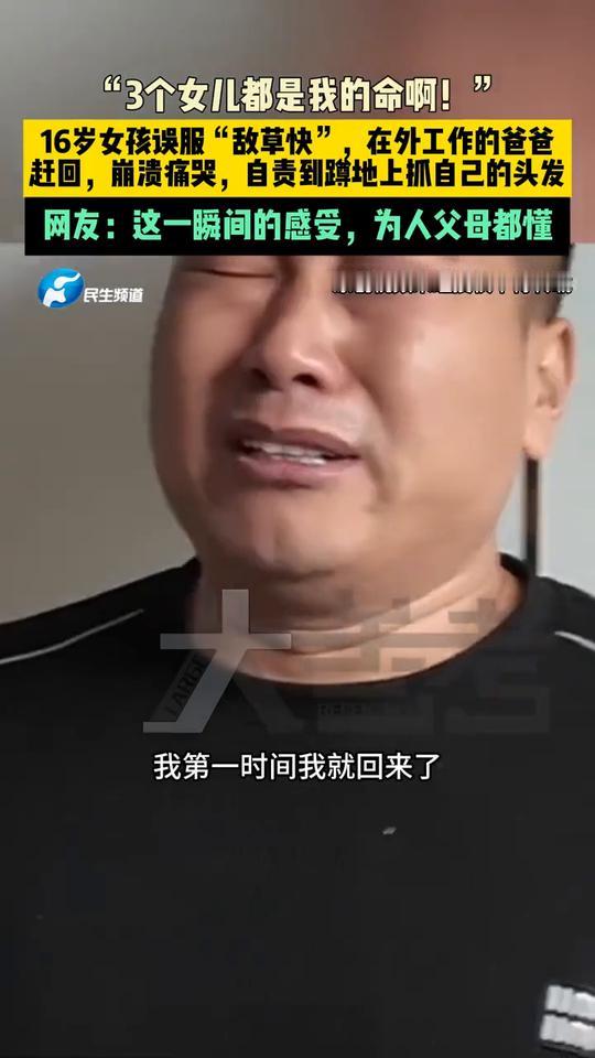 16岁女孩误服"敌草快",在外工作的爸爸赶回,崩溃痛哭,自责到蹲地上抓自己的头发。网友:这一瞬间的感受,为人父母都懂。 11月6日,河南周口。女孩爸爸:家里边打电话,那个消息说小孩子误食了毒药。我第一时间就回来了,在外面打工,没有时间陪她们,3个女儿都是我的命。目前女孩仍在抢救中。