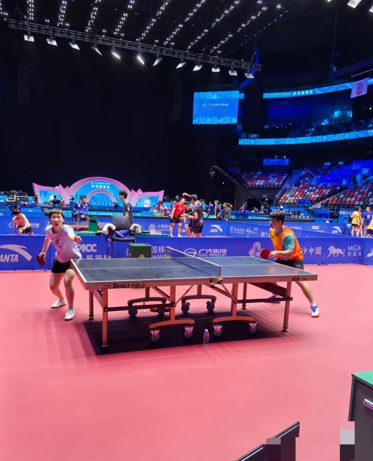 曼昱和陪练的合影来了! 全运会乒乓球项目今天就要开打,在澳门进行适应性训练的曼昱,为了提高体能和力量感,也是加班加点地训练,经常能看到她头发被汗水打湿的情景。 这不,曼昱和这位陪练的小队员展开激烈对攻训练,肉眼可见曼昱练得很凶,经常可见汗水湿透衣衫;小伙子能够给曼昱当陪练也很自豪,练得十分投入。 训练结束后,曼昱顾不上擦干头发上的汗水,就和陪练合影留念,陪练的小伙子骄傲地竖起了大拇指。 曼昱加油,愿你突出重围,打出自己的精彩!