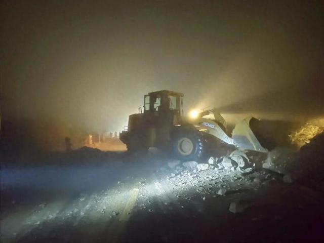 抢险过程中,队员们采用“机械为主、人工为辅”的科学作业模式,利用装载机对坍塌的大块土石进行集中清运,快速打通道路核心通行通道;待大型设备完成主体清理后,抢险人员手持铁锹、扫帚等工具,对路面残留的碎石、泥浆及杂物进行精细化清扫,确保路面平整无隐患。经过3小时的奋战,20米危险路段全面抢通,约40平方米的坍塌土石全部清运完毕,道路恢复正常通行。
