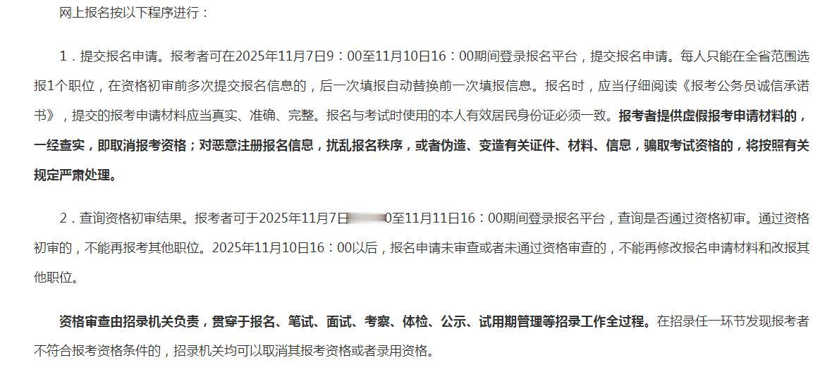 2026年度山东省省级机关及其直属机构考试录用公务员,报考者可在2025年11月7日9︰00至11月10日16︰00期间登录报名平台,提交报名申请。公共科目笔试时间为:12月7日上午9︰00-11︰00行政职业能力测验,12月7日下午14︰00-17︰00申论。