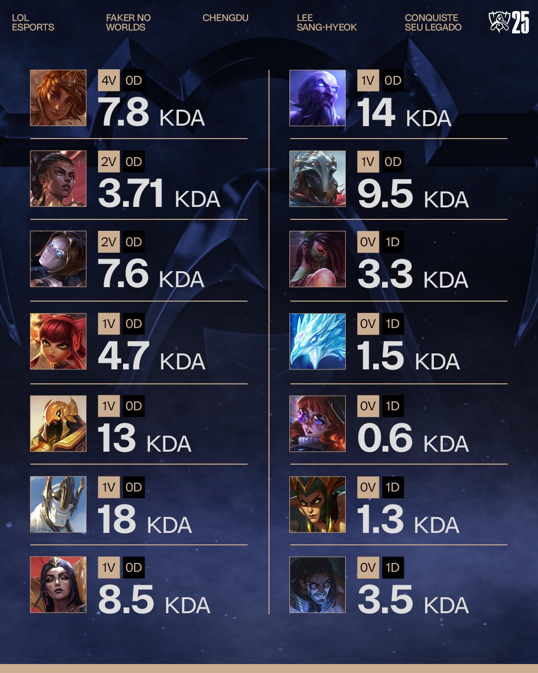 赛事官方统计Faker S15使用不同英雄KDA数据:加里奥最高
