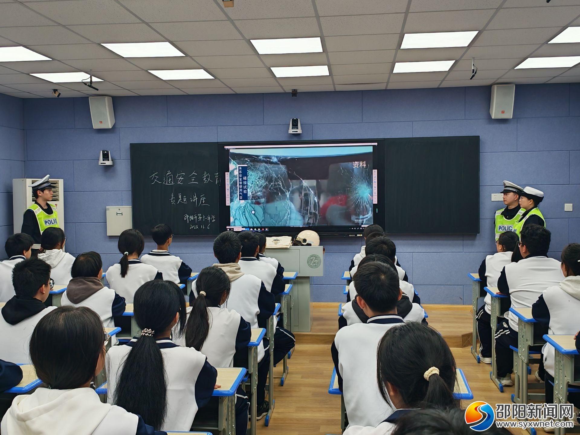 邵阳新闻网11月7日讯(通讯员孙静张春花)11月6日,邵阳市公安局交通警察支队双清大队走进市第十一中学,开展“文明交通礼行天下”主题宣传活动,为全校师生带来一堂生动实用的交通安全知识课,课程通过直播在各教室同步播放。