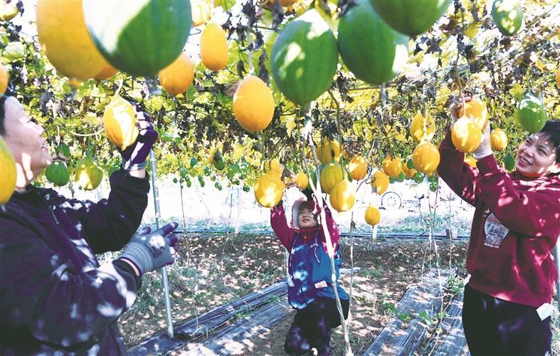 11月5日,村民在采摘瓜蒌。淄博高新区中埠镇小王村党支部领办合作社,通过“支部+合作社+农户”模式,将59亩瓜蒌地变成“致富田”,走出一条乡村振兴金色之路。