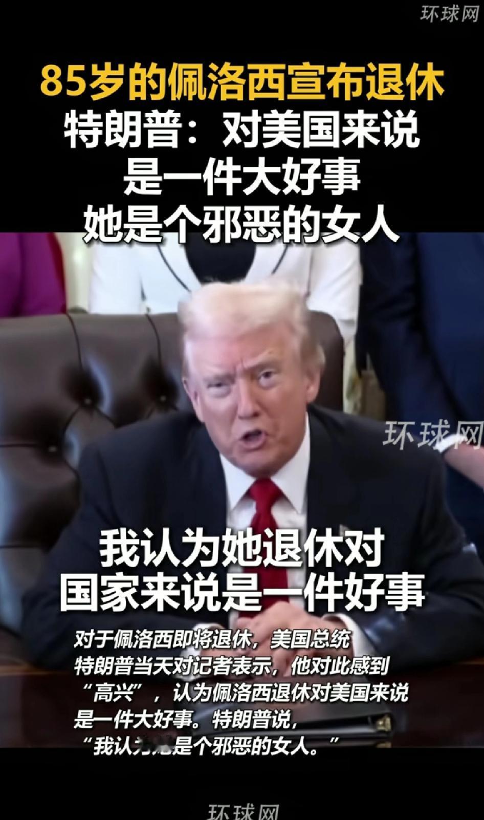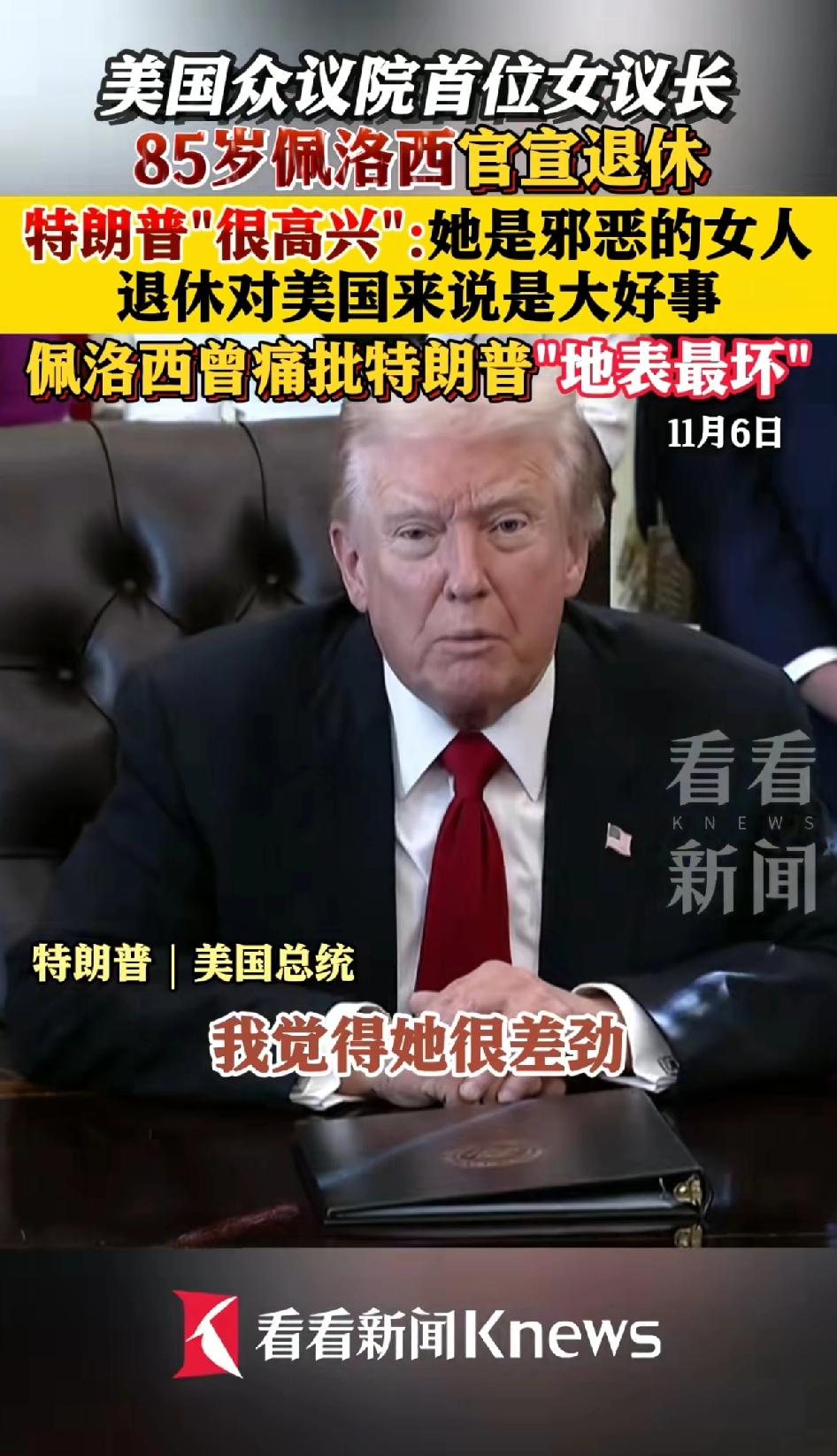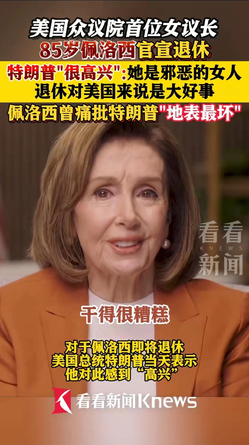美国众议院首位女议长85岁的佩洛西官宣退休,特朗普直接表示自己非常高兴[捂脸]还称佩洛西是邪恶的女人,觉得她很差劲。 而佩洛西对特朗普的评价也是“地表最坏的人” 干的最糟糕的总统,给国家带来很大的损失! 这俩人对骂的场景,不亚于两个农村泼妇指着鼻子骂街。 用河南话就是;特朗普:你个泼妇终于走了,这么差劲还厚着脸皮占着位置。 佩洛西:你个赖孙,不干好事,世上没有你恁赖孙的人了。 俩人是没见面,见了面估计也是横眉冷眼,私下没记者的时候估计能打起来。[捂脸][捂脸][捂脸][捂脸]我相信特朗普还会率先先出手。