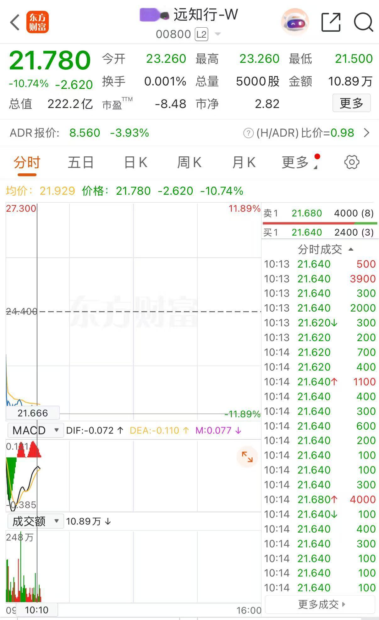 上证报中国证券网讯(记者孔令仪)11月7日,文远知行开盘一度跌超10%,最低报21.5港元/股。截至10点10分,文远知行跌10.74%,报21.78港元/股,总市值约222.2亿港元。