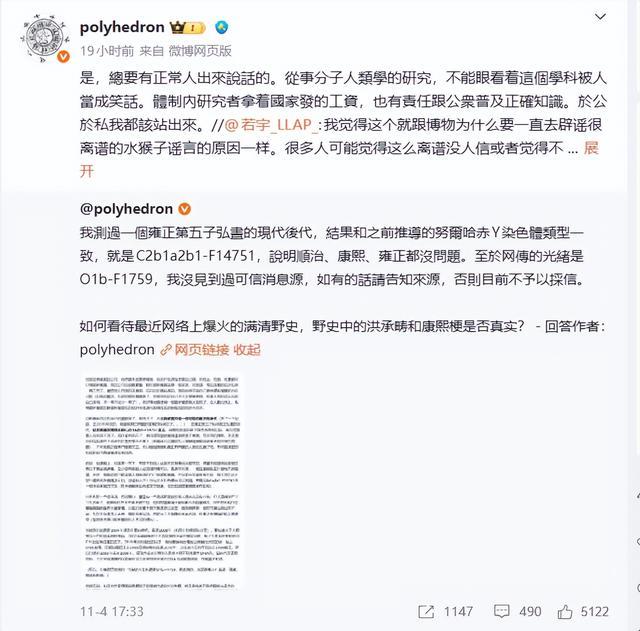 近日他看到了这些网络传言,在微博上发布了一篇文章回应此事。他提到,分子人类学作为研究,采样过程十分严谨,需要当面抽血,涉及重要家族,不仅需要看身份证,还需要问家谱;若涉及爱新觉罗这种重要家庭,还需要请教清史专家,不会仅凭抽样者一面之词就相信其身份。而商业测试公司,采样基本靠抽样者寄送唾液,用户身份、祖源信息全靠自填,可信度难以核实。