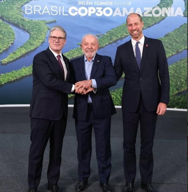 巴西总统与威廉王子、斯塔默罕同框!11月6日卢拉作为东道主接待威廉王子与英国首相,欢迎英国王子与首相先生到巴西参加联合国气候变化大会,并在欢迎仪式上合影。 从媒体晒出的照来看,一开始威廉王子站C位,不过为了拍照,巴西总统一把拉过斯塔默,英国王子只好站在边儿上,双手放在前面,有点儿不好意思了。 不过巴西总统很热情,又伸出另一只手去拉着王子的手,这时三人的手放在一起拍照,画面很欢乐,威廉笑容灿烂,这画面也太难得了吧!