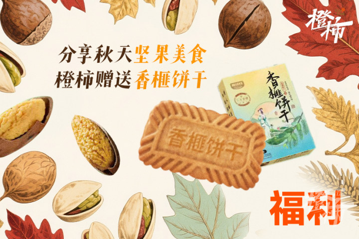 活动参与方式:在橙友圈#快拍快拍#话题发帖,分享秋天坚果和你镜头下的美食图片(图文均可),记得帖子带上标签#香榧饼干#。