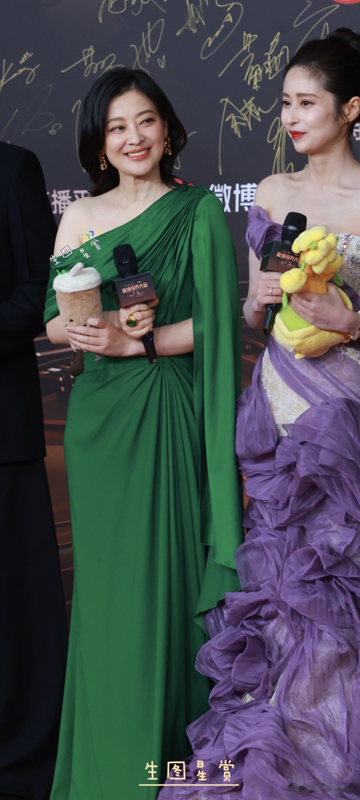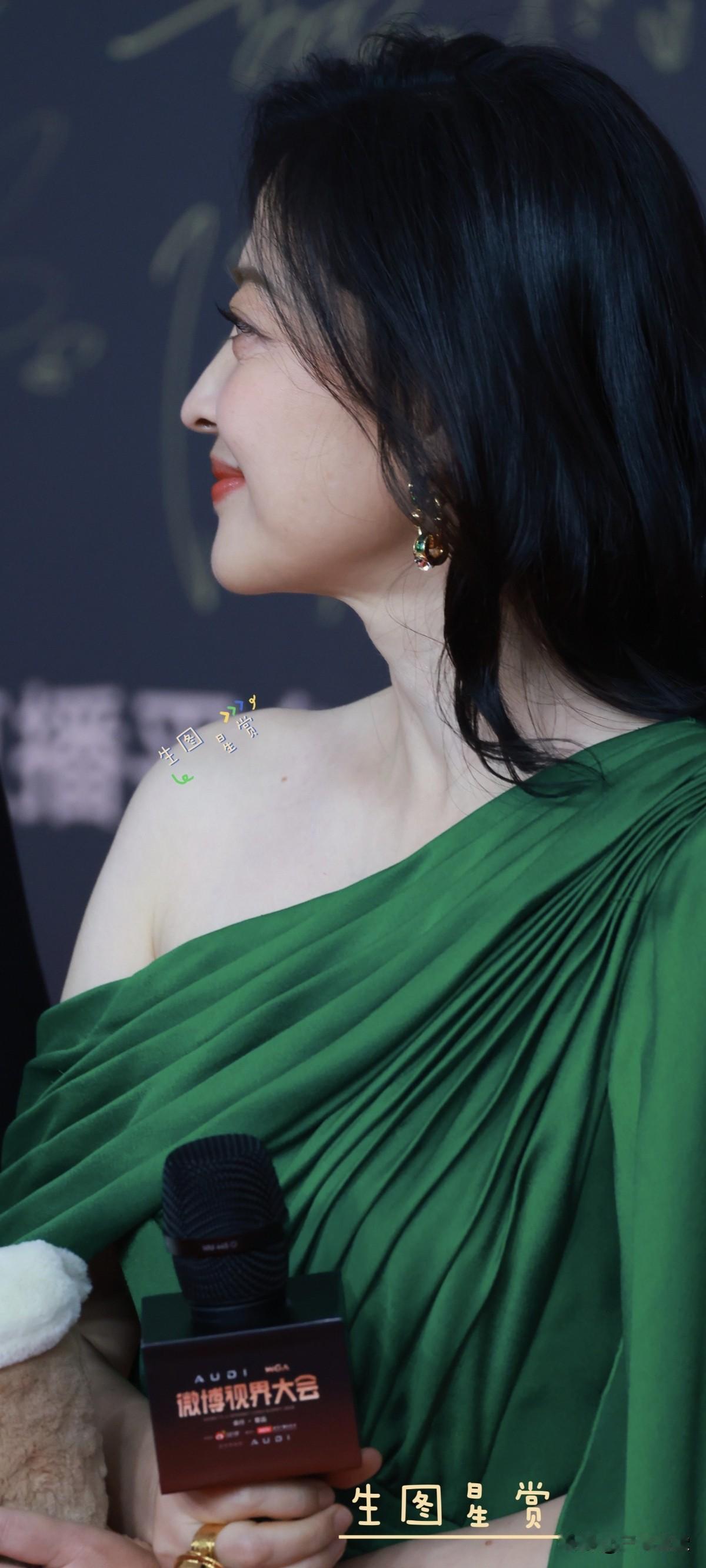 梅婷×微博视界大会红毯 斜肩礼服明艳优雅:梅婷这状态也太好了吧!绿色礼服绝了
