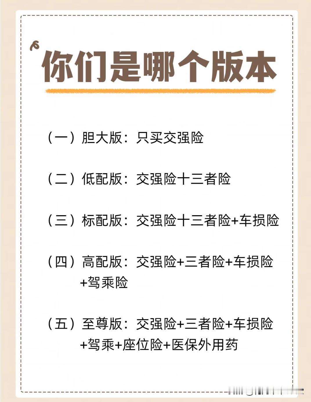 电买车险别盲目!这几个版本你属于哪一种? 买车险就像选手机版本,有人偏爱 “极简胆大版”,有人追求 “顶配至尊版”。 不同的车险配置对应着不同的风险应对策略和用车底气,看完这些版本分类,你是不是也想立刻对号入座,看看自己的车险属于哪个 “门派”? 车险承保 新车车险 私家车车险 车险新规 车险收费 新车险政策 车险在线比价