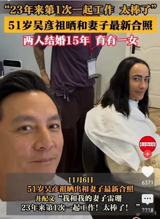 吴彦祖和他老婆Lisa S这对夫妻太有意思了。年轻时,Lisa S是身高1米78的模特,身材高挑、五官深邃,和吴彦祖堪称俊男靓女组合。2010年他们结婚,三年后有了女儿,一家三口超幸福。 不过最近吴彦祖晒出和老婆在化妆室的合影,网友关注点全偏了。Lisa S今年47岁,发际线变高、大脑门突出,不细看还以为是镜子里的吴彦祖,长相越来越硬朗男性化,和吴彦祖越来越有夫妻相。 吴彦祖发照本是纪念跟妻子认识23年来首次一起工作,没想到网友都盯着这夫妻相了,也是很奇妙。