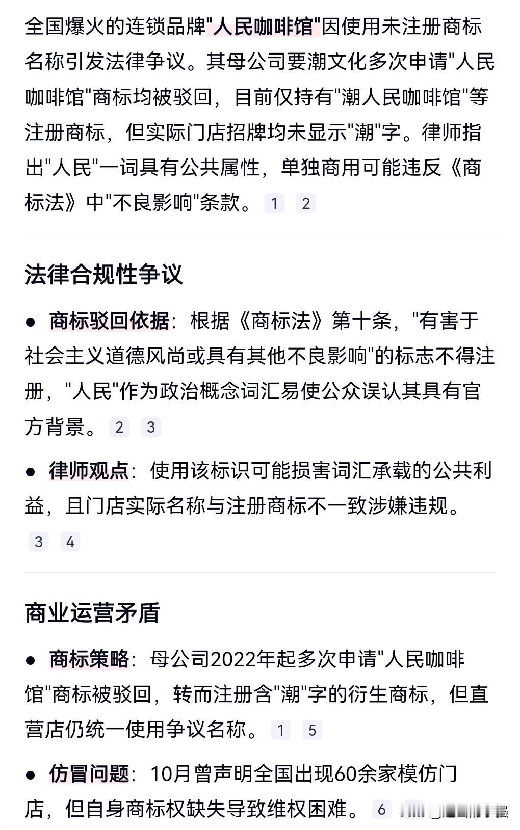 什么情况?竟然敢叫“人民咖啡馆”?人民两个字是能随便用作商标的吗? 当地是怎么回事?没有查这些店吗? 怎么能够允许商家随随便便用“人民”两个字做商标和招牌呢? 况且该公司申请的“人民咖啡馆”多次被驳回,而是“潮人民咖啡馆”。 但是在招牌上却故意不要这个潮字。 这是典型的欺诈。 这就是一个卖情怀的咖啡馆,对于相关的违法问题,要好好的处理一下才行。