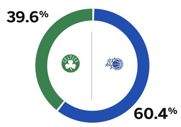赛前,美媒ESPN预测本场比赛,魔术胜率为60.4%,凯尔特人胜率为39.6%。