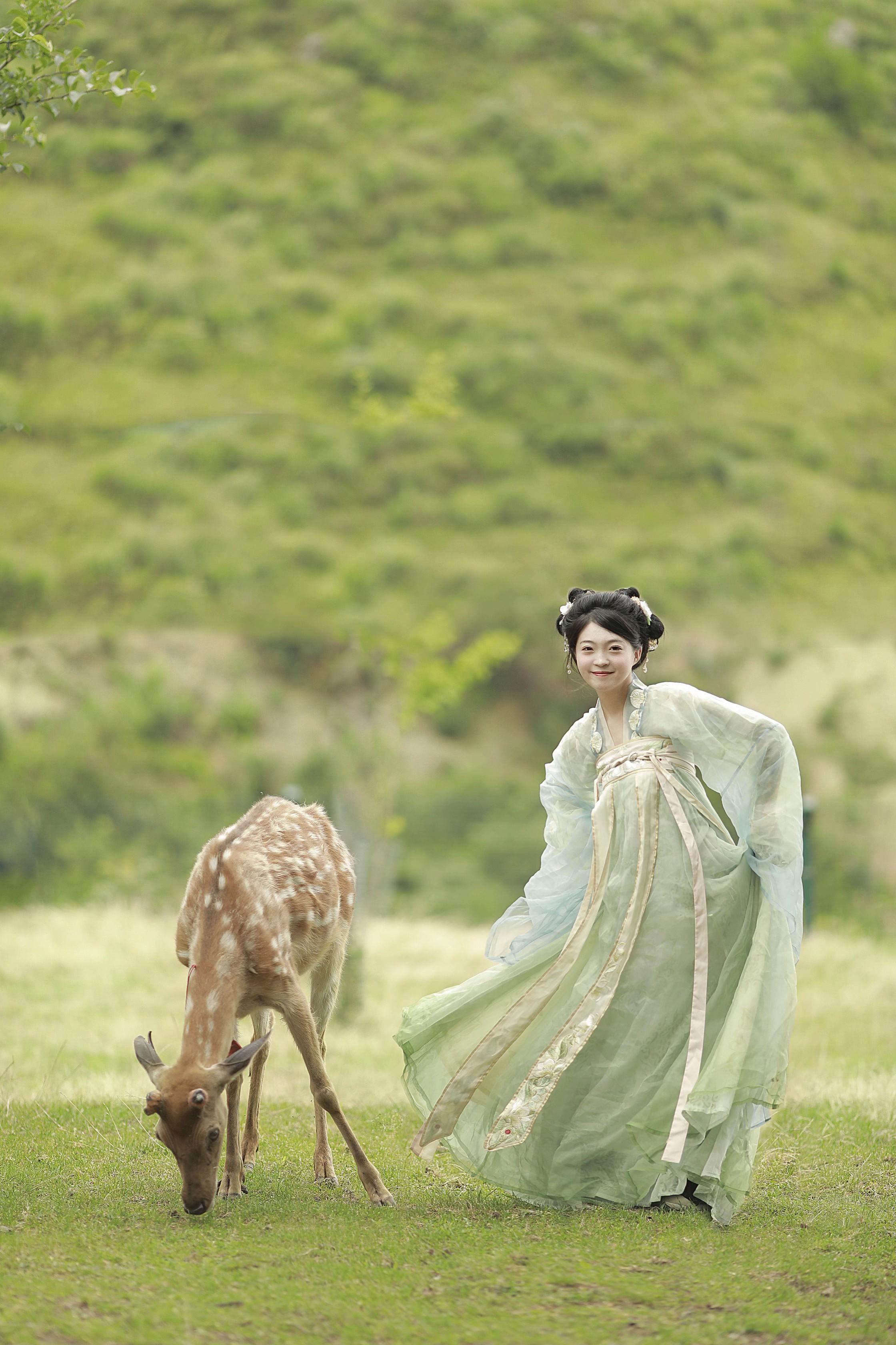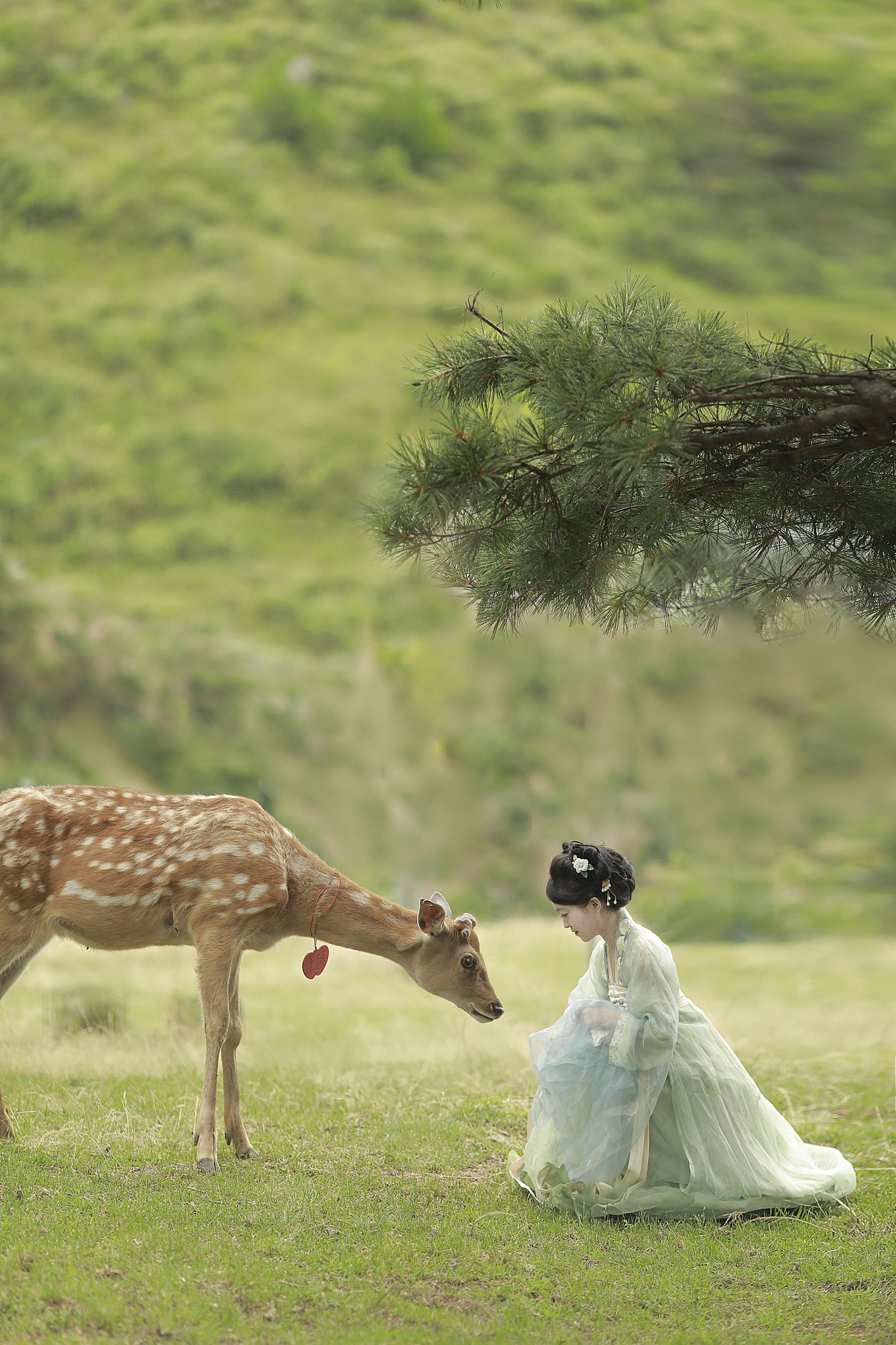 鹿寻时和小鹿的合影。这只小鹿是前年去宜昌百里荒的时候遇到的 名字叫做土...