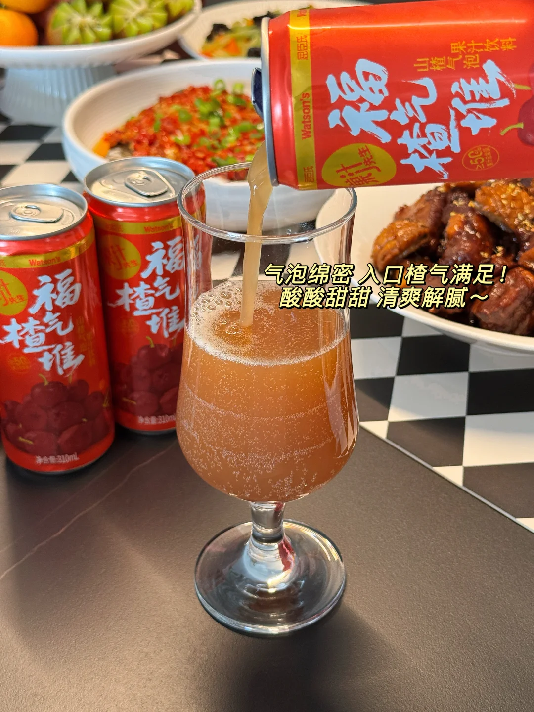 只用鲜果鲜榨,山楂汁含量更是≥50%,倒在透明玻璃杯里,那抹玛瑙色光看着就让人食欲大开,朋友们也都说好喝,普通山楂水要么是寡淡的调味感,喝着没劲儿,解腻总差点意思,但这款山楂气泡果汁不一样,它带着绵密的微气泡,入口先是酸甜的山楂味,接着气泡在嘴里轻轻炸开,清爽感直接冲开喉咙里的腻,比喝普通山楂水要通透多了,连吃了两块重油糕点,喝半瓶就觉得胃里舒服不少~