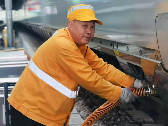 在不足1.8米宽的列车股道间,卸污工韩春卯身着防护服,正趁着列车停靠的几分钟窗口期紧张作业。打开盖板、拉出卸污管、对接污物口、扣上保险耳、开启负压抽吸,16个规范动作一气呵成。“既要保证污物无外泄,更不能耽误列车正点发车,这是我们的职责。”韩春卯朴实的话语里满是担当。进博会期间,他和工友们日均保障数十趟列车卸污,一天行走近30公里,用一身汗水换得旅途洁净,每一次精准对接、快速作业,不仅关乎列车的整洁容颜,更直接关系到成千上万旅客的舒适体验,他们是车站里最不起眼的存在,却为进博会期间南来北往的列车注入了洁净的活力。