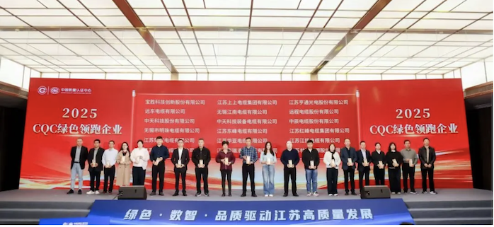 大会期间,亨通光电荣获中国质量认证中心颁发的“cqc2025绿色领跑企业”。