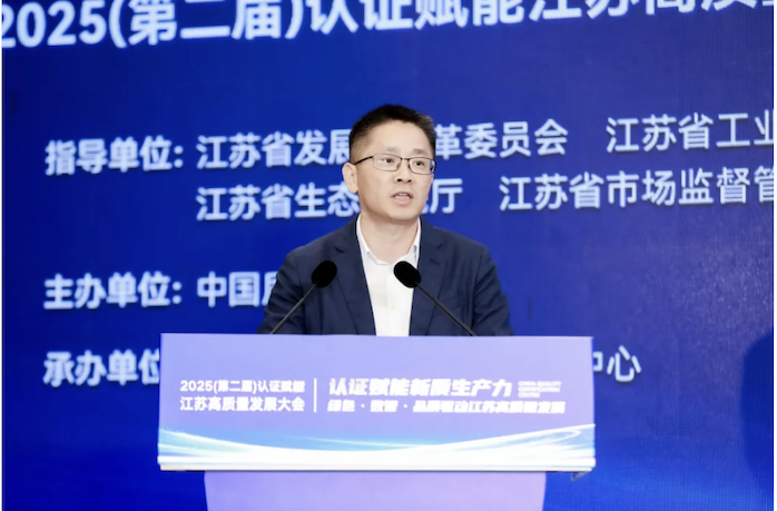 2025年11月6日,由中国质量认证中心(cqc)主办的2025(第二届)认证赋能江苏高质量发展大会在南京隆重召开。本次大会以“认证赋能新质生产力:绿色·数智·品质驱动江苏高质量发展”为主题,通过政策解读、技术研讨、成果发布、案例分享等多维互动,搭建高端对话平台,亨通集团副总裁陆春良受邀出席本次盛会并发表主题演讲。