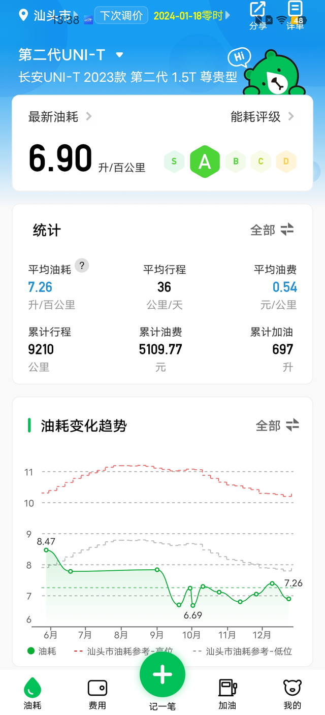 分享二代unit油耗和使用感受 不知不觉已经用车快9个月了,行驶了快1万公里,无论是外观还是智能表现,没得一说,路上好几次有人夸这车真好看,嘻嘻 📉 能耗分享 表显长期油耗6.3,实际油耗7左右,这个数据中规中矩吧 🔧 保养分享 大家保养的时候最好是加好一些的机油,我用的嘉实多极护明显感觉发动机很顺畅,低速顿挫明显改善 💔 爱车吐槽 唯一不满足的地方就是胎噪会有点大,底盘偏硬