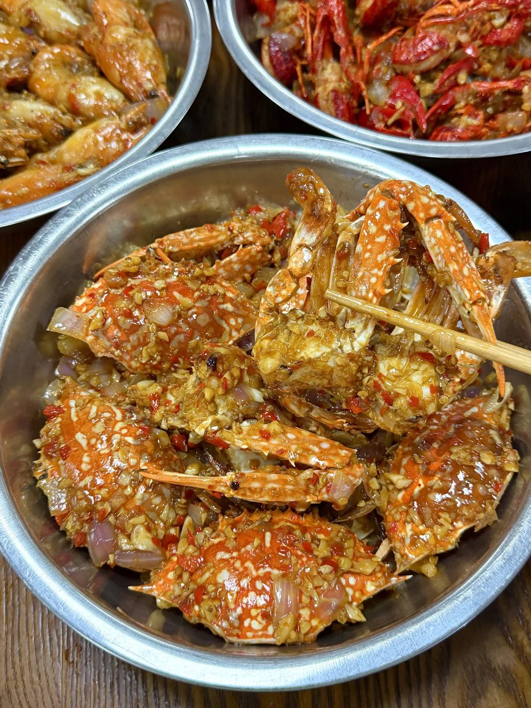 感谢🙏长沙老口子推荐!!这家真的名不虚传~不是本地都找不到的苍蝇馆,没啥环境可言,口味却比商场预制菜强太多了🥹🥹秘制香辣蟹个头好肥好入味!还有罗氏虾!是吃完还想要立刻想要加菜的冲动! 下次一定还要再朋友来n刷(定位到:柳师傅