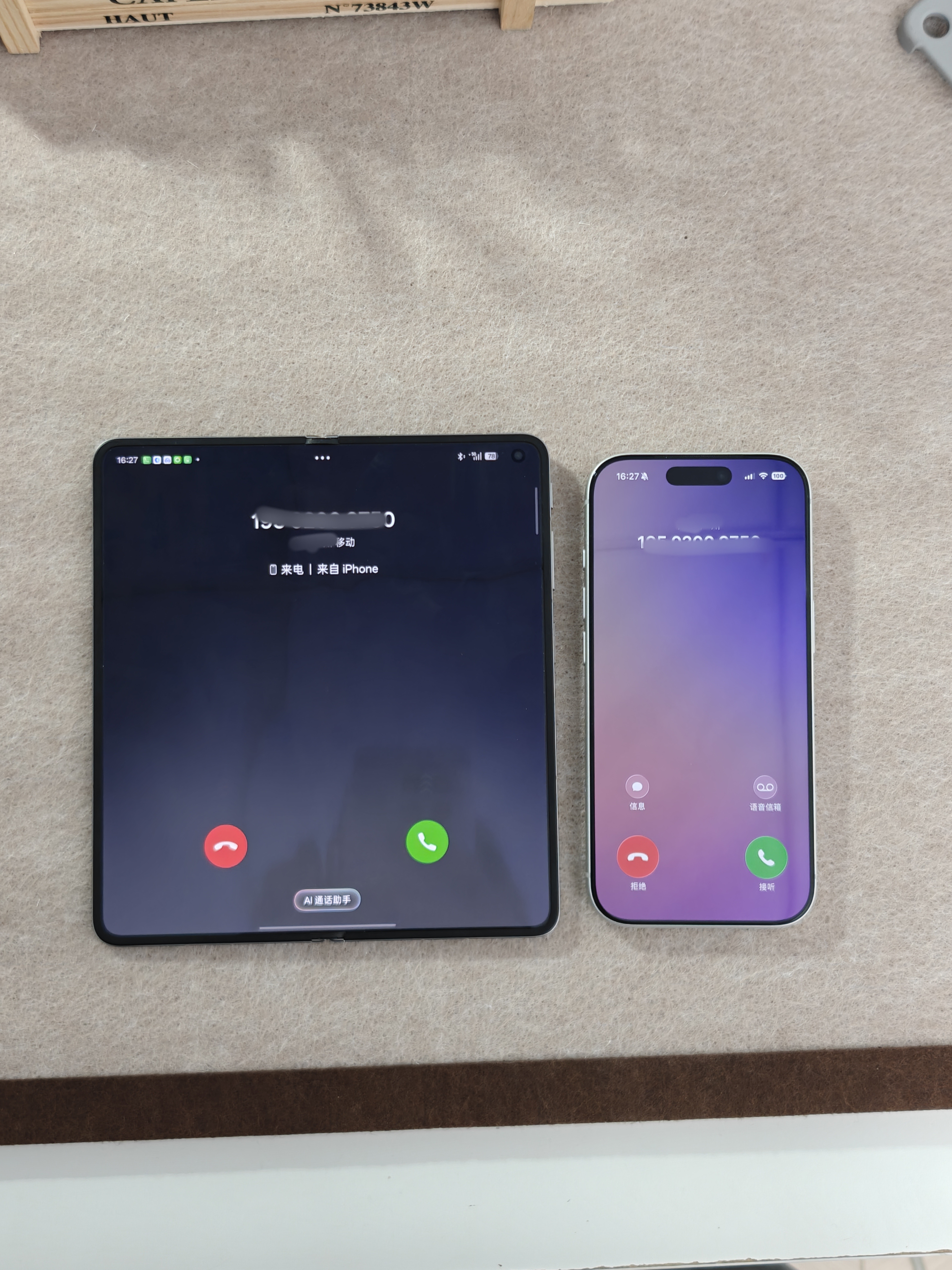 而且现在完全不用担心系统壁垒,O + 互联一开,直接打破生态墙👇照片 / 文件一碰互传,比 AirDrop 还顺手;甚至iPhone来电、通知还能实时同步。