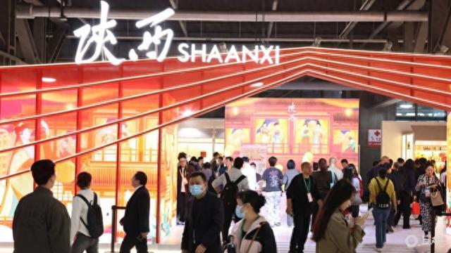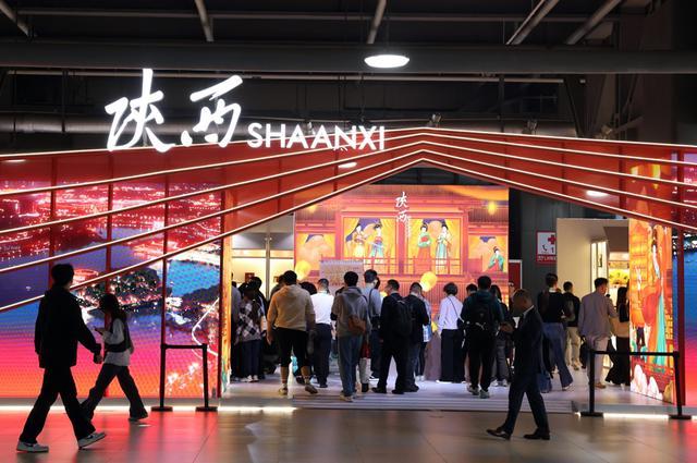 陕西展厅通过“来陕西馆,变唐潮人”的氛围营造,瞬间将观众拉入盛唐气象与现代潮流交织的场景中。