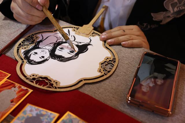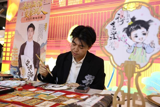 “唐妞”IP创始人二乔先生已是第三次参展进博会。他现场在素白扇面上勾勒描画,笔锋流转间,一个俏皮可爱的“唐妞”形象悄然浮现。面对大量产品预定,二乔笑称这是“甜蜜的负担”。