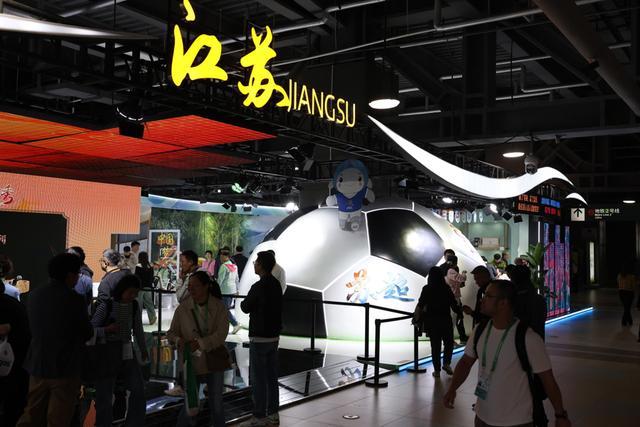展区内最“燃”的板块非“苏超”莫属。今年火爆出圈的江苏足球联赛,在进博会上展现的不仅是体育激情,更是一场连接古今的创意秀。