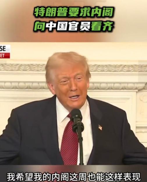 特朗普:要求内阁全面向中国官员看齐,本周内必须做到 果然,特朗普本质上还是“慕强”。据多家外媒报道,当地时间11月5日,特朗普在白宫中表示,在中美会晤中,中方官员的专业给他留下了深刻印象。 他没藏着掖着,当着内阁成员的面就说,中方官员谈判时条理特别清晰,该坚持的原则寸步不让,该谈合作的地方又很务实。 他特意提了“强硬”两个字,说这可不是贬义,是真的让人佩服。毕竟以“交易艺术”自诩的他,向来只认实力对等的对手。 这场让他赞不绝口的会晤足足开了100分钟,结束后,特朗普亲自陪着中方领导人走到红旗车前,握手耳语完还目送车子离开,自己才转身回会场。连一直对华强硬的国务卿鲁比奥,离场时都少见地带着微笑。这些细节被记者拍下来,全美都看见了。 特朗普心里门儿清,这次能谈成事儿全靠中方的务实态度。双方刚敲定,中国未来两个月会买至少1200万吨美国大豆,接下来三年每年还会买不少于2500万吨。要知道2024年美国对华大豆出口才2213万吨,这订单等于是给美国农业州吃了颗定心丸。 更关键的是关税问题,美方直接宣布暂停24%的对华对等关税,还把10%的芬太尼关税砍了半,而且没提任何附加条件。这放在以前根本不可能,特朗普以前跟谁打交道都得先占点便宜才肯签字。 他越想越觉得自家内阁得好好学学。特朗普对着内阁成员直言,之前搞贸易战,中方反制一来,美国农场破产数涨了58%,超市里玩具、衣服价格蹭蹭涨,老百姓怨声载道。这些问题中方官员早就预判到了,应对起来游刃有余。 他特意点了稀土的事儿。美国92%的稀土靠进口,而中国握着全球近90%的精炼产能。之前中方一搞管制,美国军工生产线都快停了,特斯拉、英特尔这些巨头急得跳脚。中方官员把节奏掐得死死的,这就是专业。 特朗普当场下了命令,要求内阁一周内就得有改变。他说不用学别的,先学中方官员“抓重点”的本事。比如谈合作就盯着实际利益,别整天喊口号;遇分歧就管控风险,别动不动就搞制裁。 其实这也不是他第一次转变态度了。之前接受福克斯新闻采访时,他就说宁愿不对中国加征关税。在达沃斯论坛上还表示,期待和中国相处融洽,希望达成公平的贸易协议。 内阁成员们也没敢反驳。他们清楚自己的问题,上一任期里,光是幕僚长就换了三个,国防部长换了两任,政策朝令夕改。反观中方团队,从谈判到落实共识,全程步调一致,效率高得很。 特朗普这波操作说白了就是“见贤思齐”。他从和中国的合作里尝到了甜头,知道光靠强硬没用。毕竟农业票仓要保,通胀要压,军工供应链要稳,这些都得靠和中国好好谈。