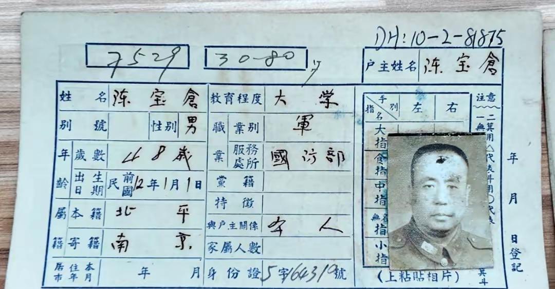 这是尘封已久的吴石、聂曦、陈宝仓三位烈士的户籍卡,终于找到重见天日了!我们看到户籍卡上,有照片、当时登记时候的年龄、籍贯、任职单位及职务、文化程度等。吴石的文化程度还是挺高的,写着陆大,不用说职务也是很高的,籍贯是福建林森。聂曦的籍贯是福建闽清,毕业于军校。陈宝昌仓的籍贯是北平,学历是大专。他们为祖国的解放事业,隐藏了自己真实的身份,与敌人战斗到最后时刻,英勇牺牲。再一次向他们表示深深的致敬!
