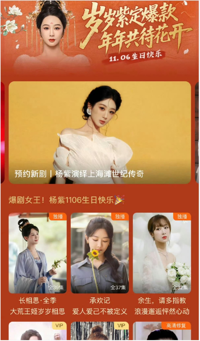 优酷,腾讯,爱奇艺都是掐着点给杨紫过生日,看来湖南卫视还是更喜欢赵丽颖,上次赵丽颖过生日,除了三大平台掐点给她过生日,湖南卫视连发10条视频给她庆生,但这次并没有发文给杨紫庆生,有粉丝已经开始@芒果要祝福了,杨紫在湖南卫视的《国色芳华》播的还不错,《锦绣芳华》差一点,她接下来的剧都是其他平台的。