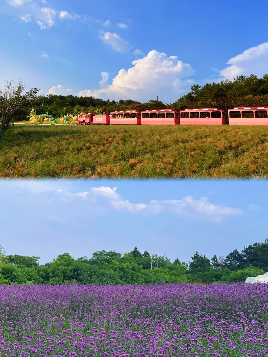 小火车穿梭在草原🌿看骏马驰骋和格桑花花海