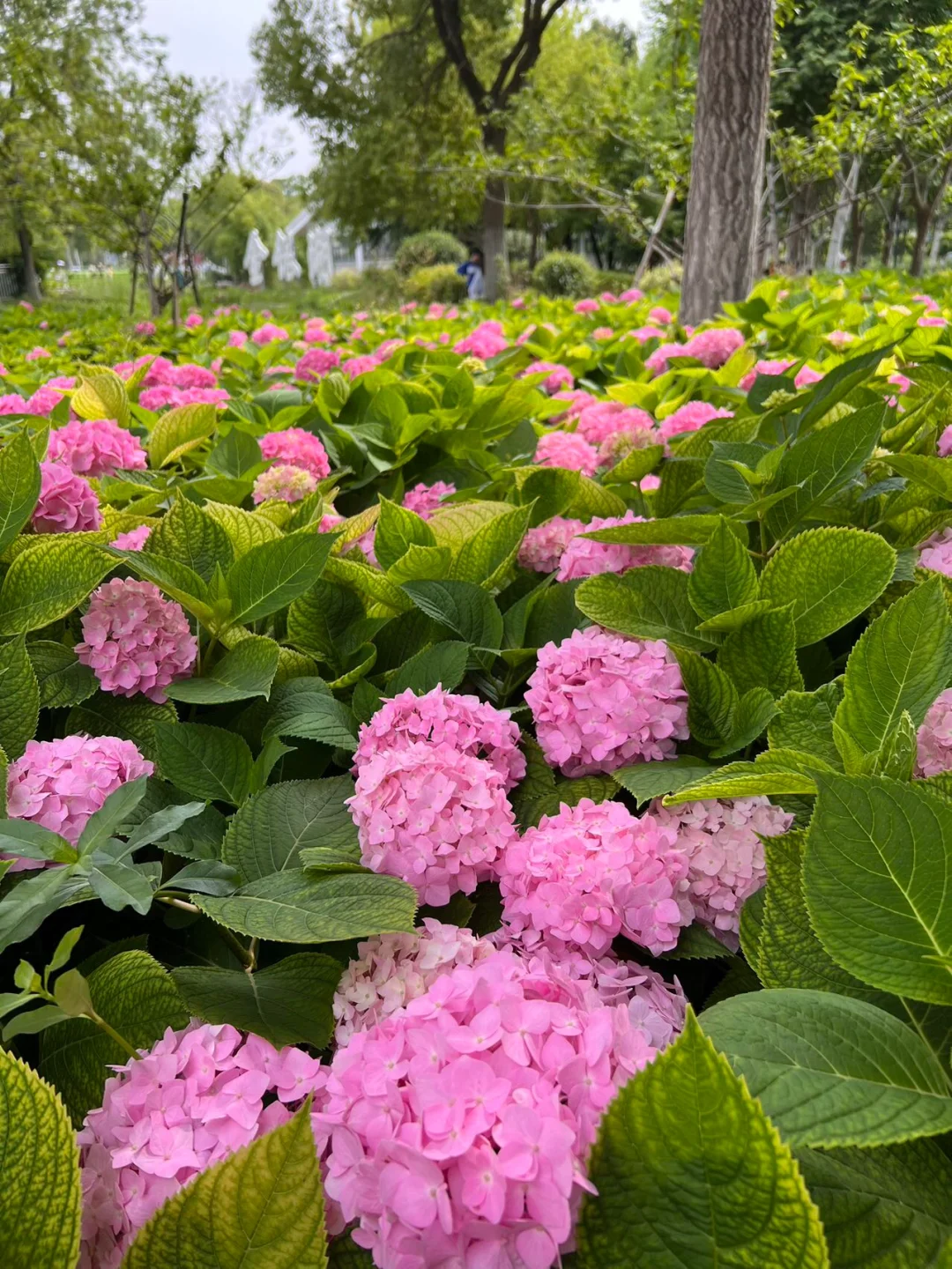 园内新种了近千平方米的绣球花,里面的绣球花种类多,
