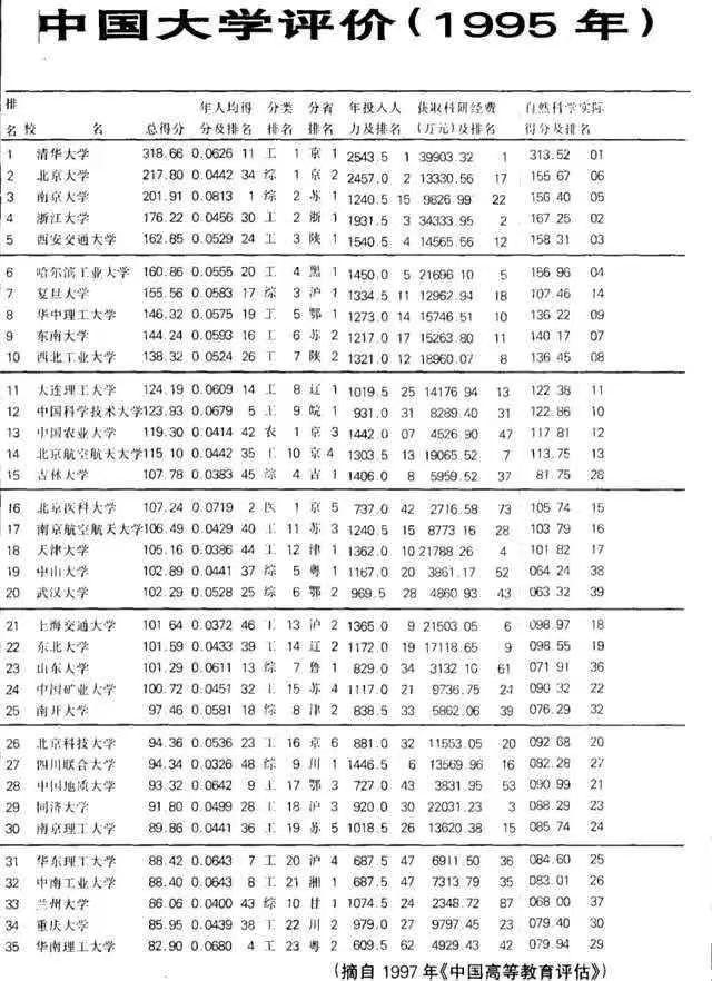 30年沧海桑田,30年前的国内排名(唯一官方排名)前35名的大学,6所已经明显掉