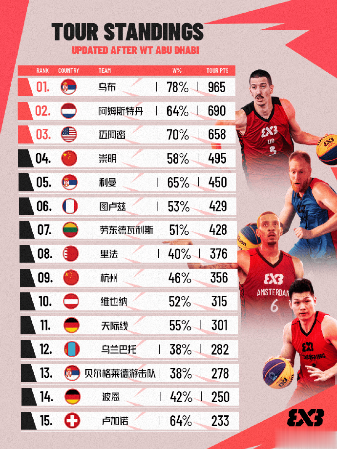 此前阿布扎比大师赛,天际线队在FIBA3x3阿布扎比大师赛决赛中19-17战胜迈阿密队,队史首次夺得大师赛冠军,菲尔蒂格当选本站最有价值球员。
