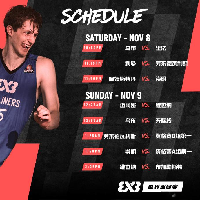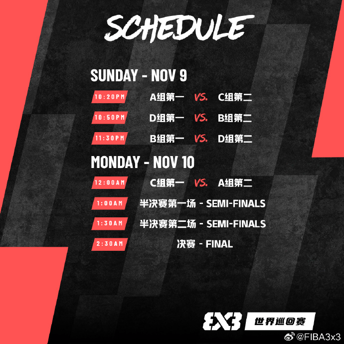 虎扑11月07日讯FIBA三篮分享大师赛收官赛赛程:年度总决赛名额即将揭晓。