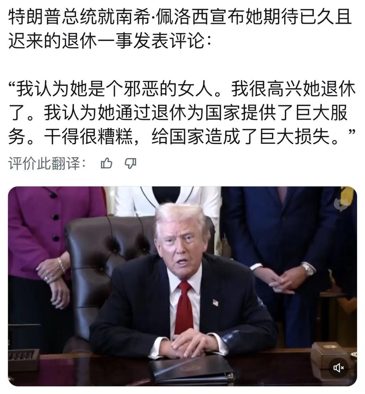 这两个俺都不喜欢,俺喜欢的是年轻的他们,绝对是美女帅哥,让人流口水那种。 年轻的佩洛西来过北京,特朗普也曾经因为看好中国而批量在中国注册商标,甚至让孙女学中文,所以他们年轻的时候和东大还是有交集的。可惜岁月流转,阴差阳错,恩怨纠缠,他们最终和东大的互利失之交臂,这或许是历史的悲哀。