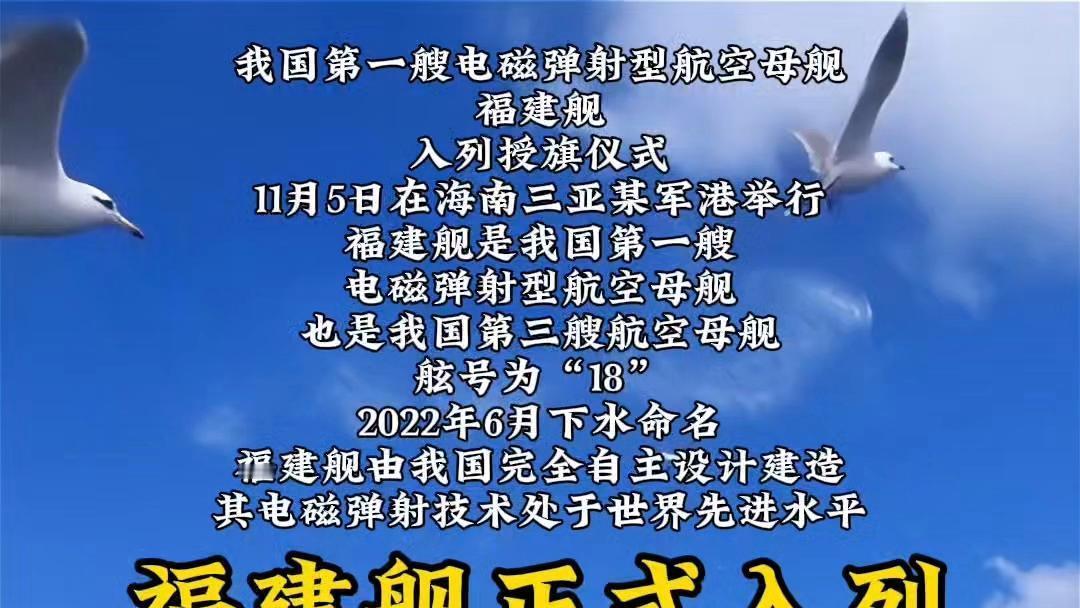 最新消息: 中国福建舰正式入列、统一台湾就为期不远了! 2025年11月5日福建舰正式入列,作为我国首艘电磁弹射型航母,它的服役确实为推进祖国统一进程增添了重要砝码,对“台独”势力形成了极强的战略威慑 。 从军事层面看,福建舰的电磁弹射系统让舰载机可满油满弹起飞,日均可起降舰载机270 - 300架次,搭配歼 - 35隐身战机、空警 - 600预警机等,能在台海形成立体攻防体系,72小时内就可摧毁台军90%的防空阵地与指挥节点,且它与辽宁舰、山东舰协同,能完成对台东海岸的空中合围,加上055型驱逐舰等组成的战斗群,可有效遏制外部势力介入台海。 从心理与政治层面讲,福建舰入列后,台湾超65%民众认为“台独”无法抵御大陆军事行动,极大削弱了“台独”势力“以武拒统”的信心,同时也向外界明确传递了我国捍卫主权的决心。 不过,话又说回来,统一进程还涉及诸多因素,而福建舰的核心价值,是通过强大威慑压缩“台独”生存空间、抬高外部干涉的成本,为和平统一创造更有利的环境,也让台湾民进党,任何分裂国家的图谋都注定会失败。 简而言之,早日解决台湾问题才是根本!