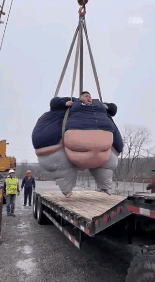 这是真的假的啊? 这么重掉下来脚受得了吗? 最后我想知道,他的两个脚还好吗?