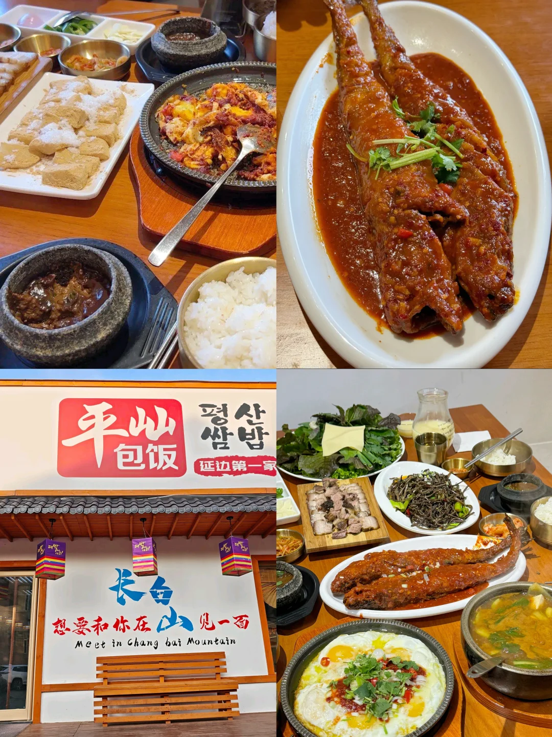 朝鲜民族风装修,在当地是我的心头好,延边黄牛肉、米肠打糕拼盘、苏子叶生菜拼盘,炭香浓郁,苏子叶裹肉超解腻