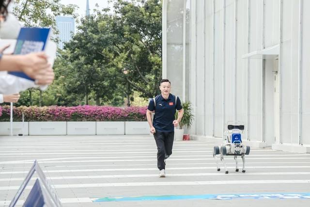 更让杨威惊叹的,是与全国首个基于氢动力系统的具身智能电力巡检机器人班组“氢立方”在110千伏猎桥变电站开展的“人机PK”。“氢立方”班组集结了人形机器人、四足机器人、带电作业机器人及无人机等多形态智能设备,形成覆盖多场景的全方位巡检矩阵。当看到四足机器人不仅能爬楼梯,奔跑时始终保持稳定,杨威好奇地追问其性能。“加氢5分钟,奔跑2小时!”主持人的介绍让杨威满是惊喜:“这耐力我服了!有这样的科技队伍守护赛事,我相信运动员们肯定更安心。”