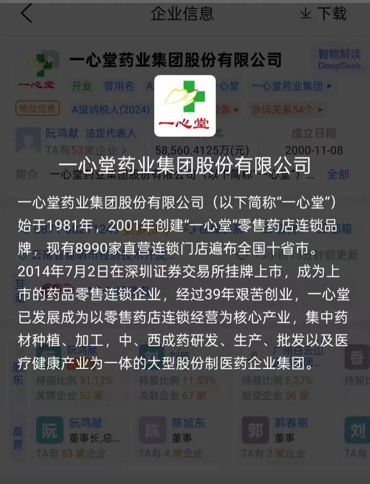 爱企查App显示,一心堂药业集团股份有限公司始于1981年,2001年创建“一心堂”零售药店连锁品牌,现有8990家直营连锁门店遍布全国十省市。2014年7月2日在深圳证券交易所挂牌上市,成为上市的药品零售连锁企业。