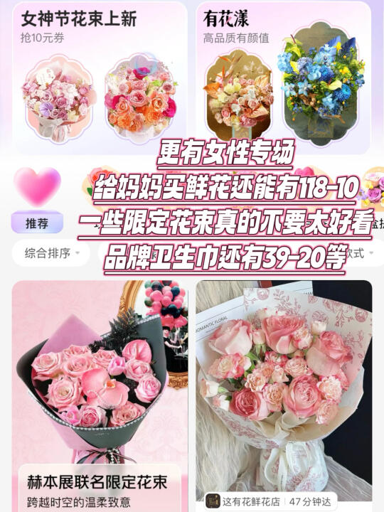 👩更有女性专场,给妈妈买鲜花还能118-10